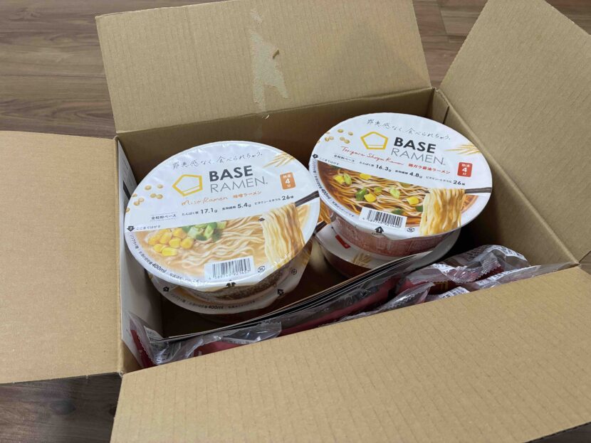 ベースフード公式サイトからベースラーメンを購入して届いたときの様子です。